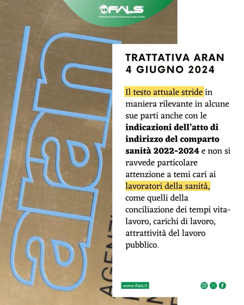 FIALS verso un nuovo contratto per tutelare i lavoratori della sanità pubblica e, all’incontro odierno, in premessa, abbiamo ribadito che le risorse complessivamente messe a disposizione per il rinnovo siano evidentemente insufficienti per garantire il recupero del potere di acquisto delle retribuzioni e valorizzare il lavoro in sanità pubblica. FIALS ha inteso quindi esprimere alcune osservazioni e proposte per migliorare il testo predisposto da #ARAN. Il testo attuale infatti stride in maniera rilevante in alcune sue parti anche con le indicazioni dell’atto di indirizzo del comparto #sanità 2022-2024 e non si ravvede particolare attenzione a temi cari ai lavoratori della sanità, come quelli della conciliazione dei tempi vita-lavoro, carichi di lavoro, attrattività del lavoro pubblico.