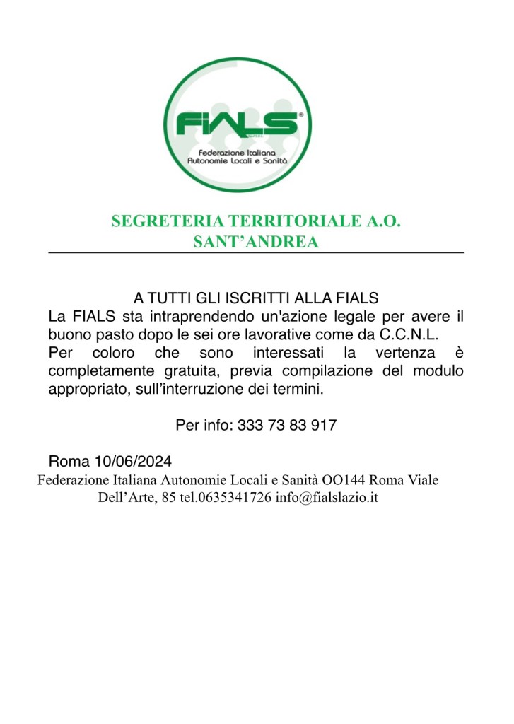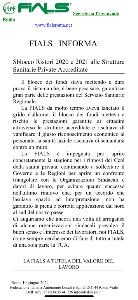 Notizie LA FIALS INFORMA Date: 13 luglio 2024Author: Fials Roma 0 Commenti Condividi: Condividi su X (Si apre in una nuova finestra) X Condividi su Facebook (Si apre in una nuova finestra) Facebook Mi piace Caricamento... Correlati