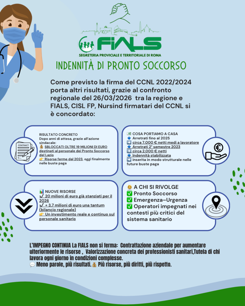 Notizie Indennità di pronto soccorso Date: 27 marzo 2026Author: Fials Roma 0 Commenti Condividi: Condividi su X (Si apre in una nuova finestra) X Condividi su Facebook (Si apre in una nuova finestra) Facebook Mi piace Caricamento... Correlati